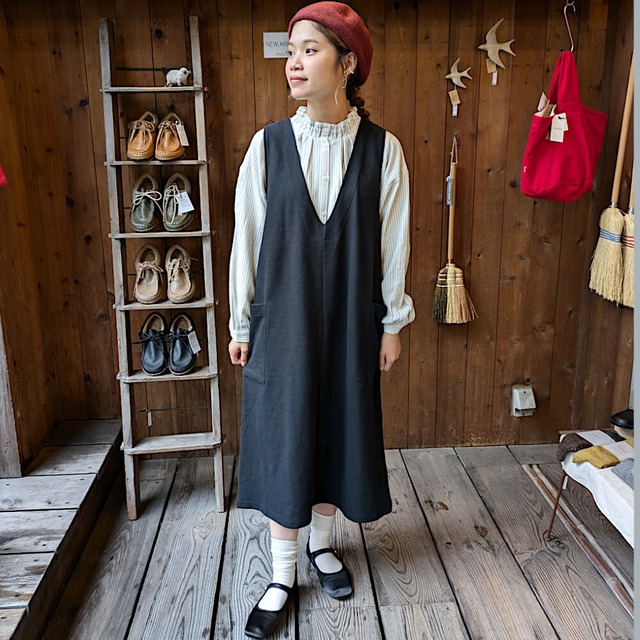 【NEW ARRIVAL】2025A/W muku コットン素材のジャンスカ 柔らかなコーデュロイ布地を使用しており、 秋冬にぴったりな温かみのあるアイテムです。 前開きのデザインなので ベスト風にも着ていただけます。 model 159cm ……………………………………………………………… **STAFFからのおススメポイント** コーデュロイ素材のジャンスカは、 リラックスしたシルエットで快適に着ていただけます◎ カジュアルなコーディネートにも、 ちょっとしたお出掛けにも幅広く対応するデザインです! ……………………………………………………………… 品質 : 綿100% サイズ : 身幅55cm 着丈102㎝ 肩幅34cm お洗濯 : 手洗い可 *トップページのご購入前に確認くださいページはご一読いただきますようお願いいたします。 https://mukutree.thebase.in/items/81606026 ・お使いのモニターの設定等により、 画像のお色が実物と異なって見える場合がございます。 あらかじめご了承下さいませ。 ・各直営店からの発送になる場合がございます。 ・在庫をオンラインストア2店舗で共有しております。 システムの都合上、営業時間外やスタッフ不在時の場合に どちらかの店舗で1点しかない商品が売れた時は在庫数の反映が遅れる場合がございます。 予めご了承ください。 ・店舗間で在庫移動がある場合、 お日にちをいただくことがございます。 ・決済で銀行振込をお選びの場合、 ご入金確認後の発送となりますので、 お届けまでにお時間をいただくことがございます。