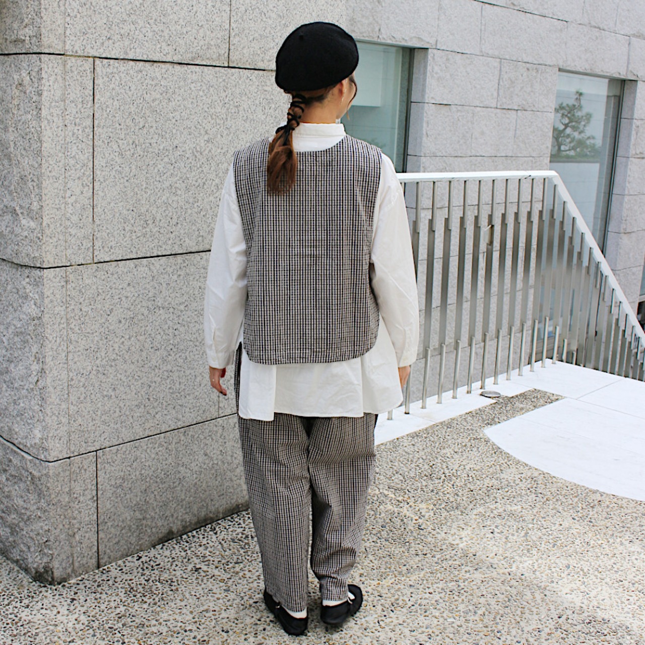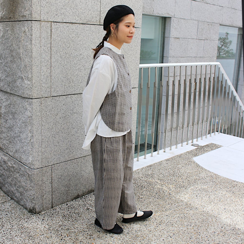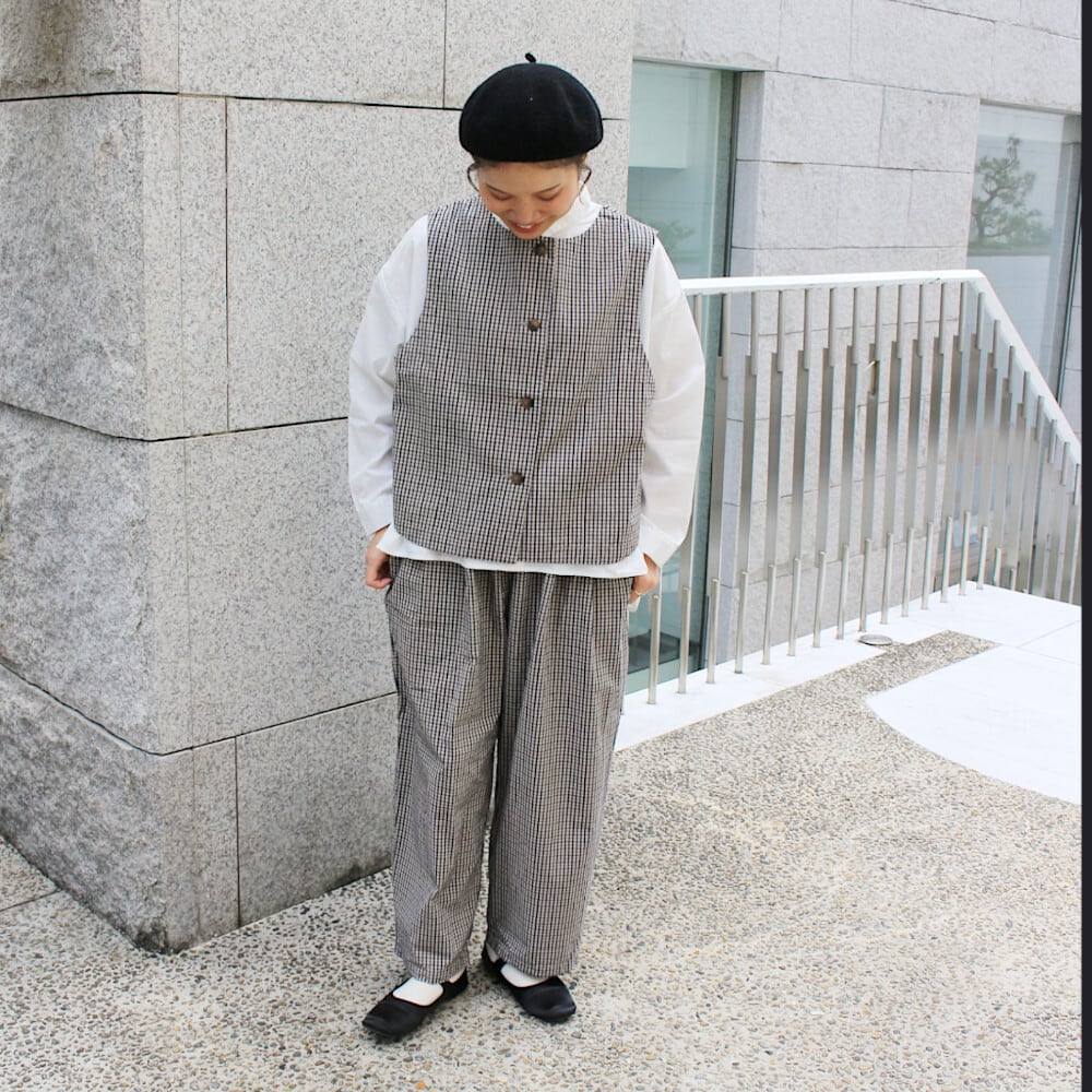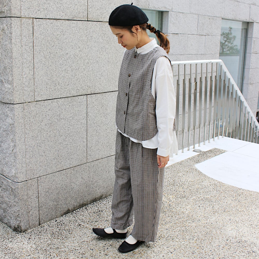 脚のラインを拾いにくいゆったりと履き心地の良いタックパンツ。