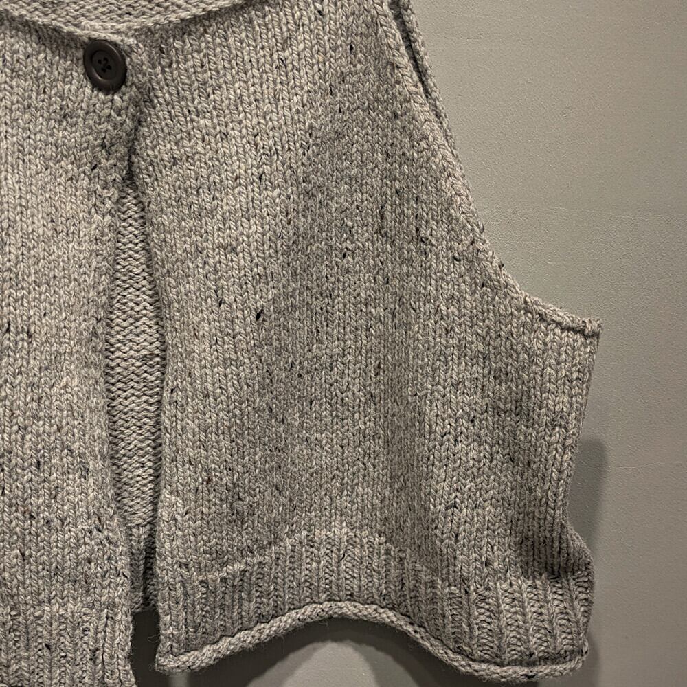 ウール混のニットは柔らかく、ほんのり暖かい着心地。