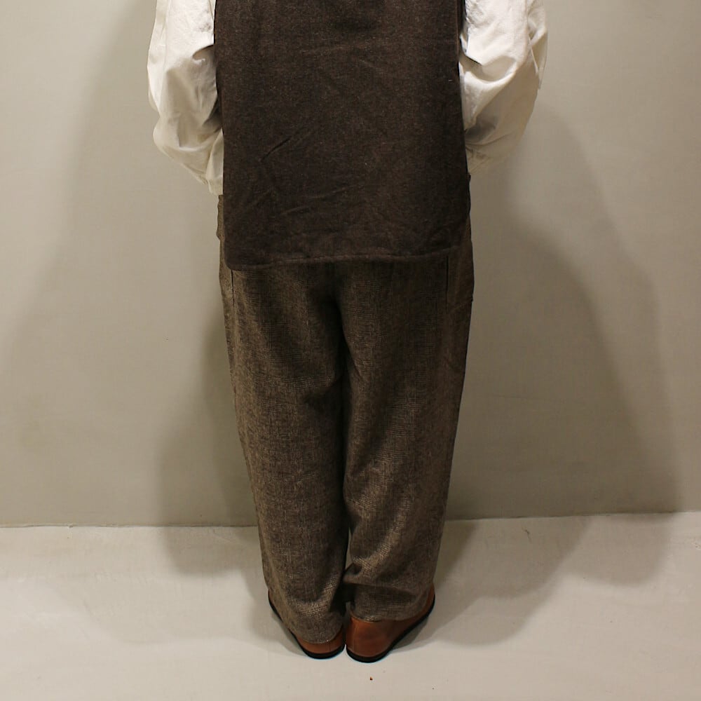 ウール混のパンツは、ベストとのセットアップでの着こなしも可能です。