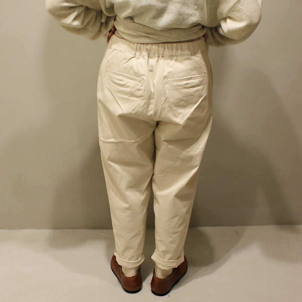 柔らかなピーチ起毛素材を使用したテーパードパンツは、
