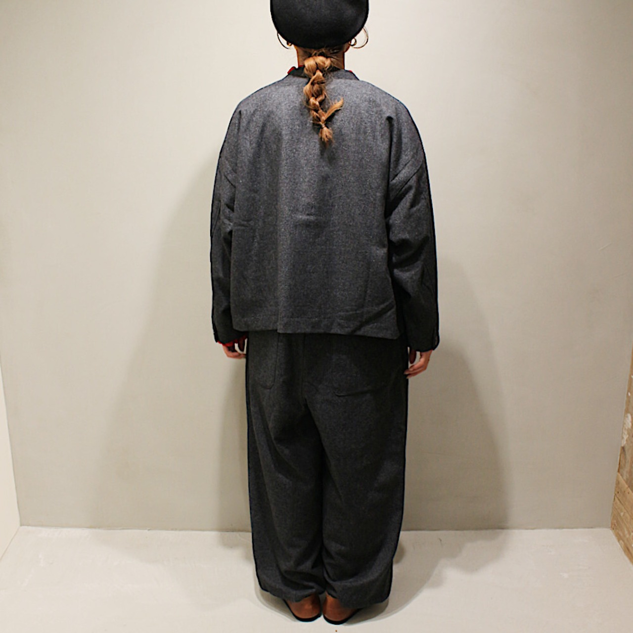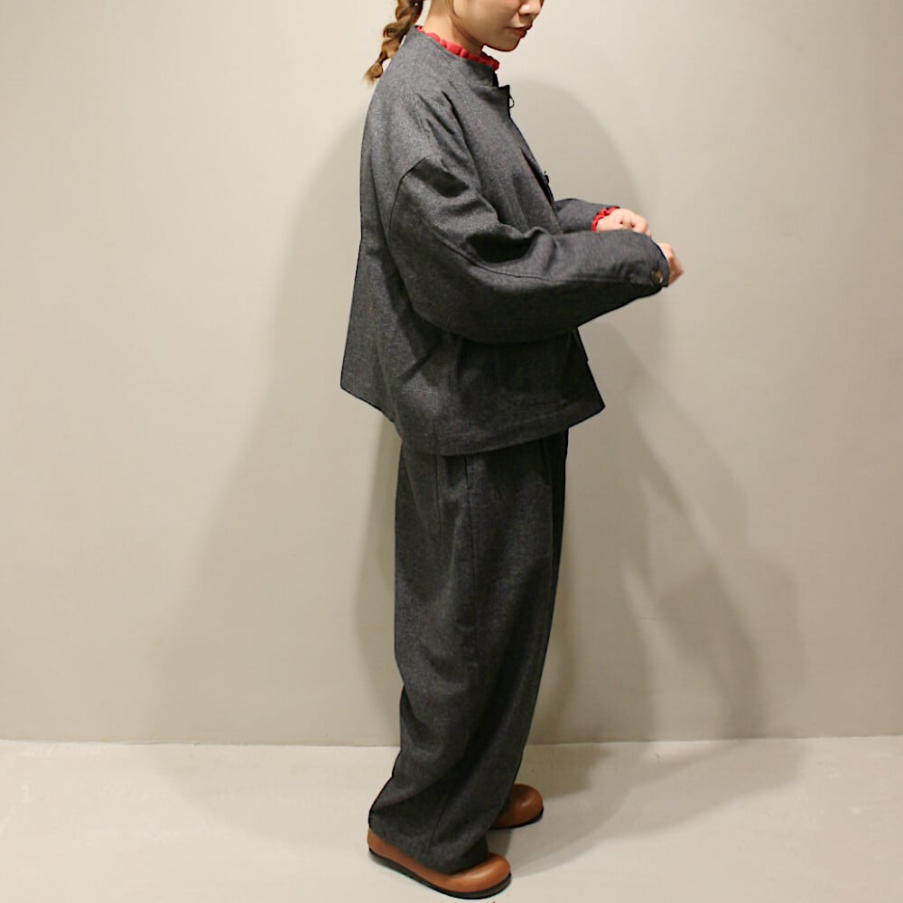 マオカラーのデザインが、顔周りをすっきりと見せてくれます。