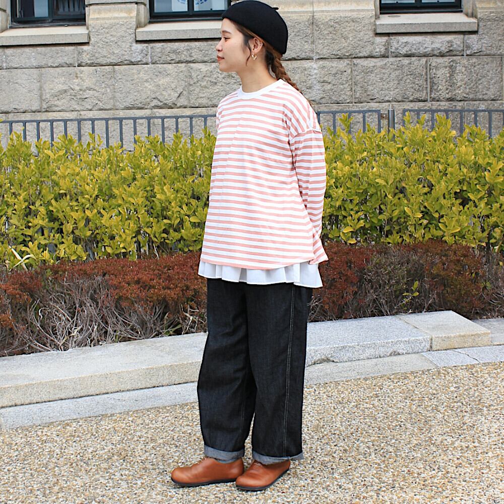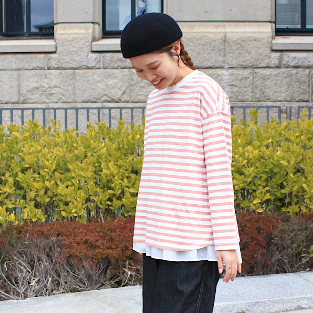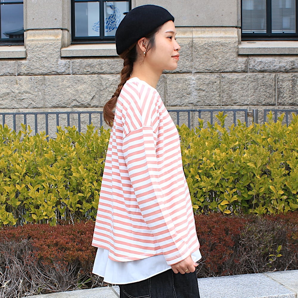 Tシャツ リサイクルコットンボーダー裾フレアワイド長袖 SZ761301OF