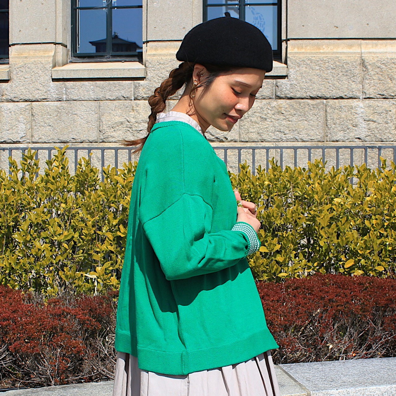 チクチクしないコットンニットも長い季節着回せます◎