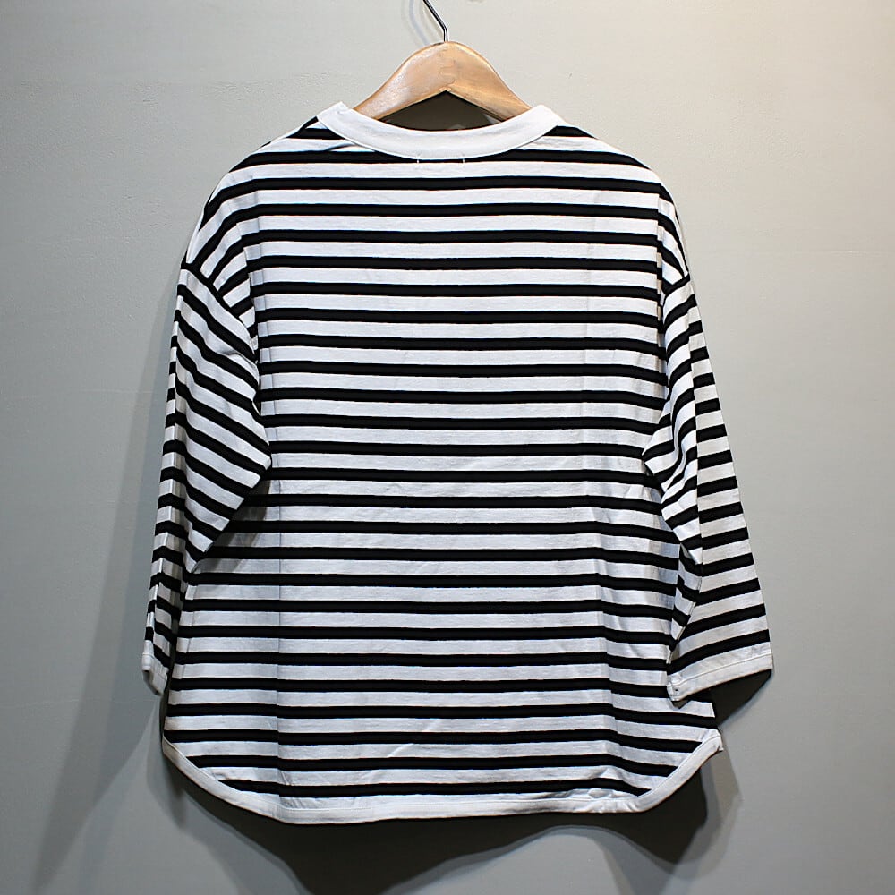 Tシャツ リサイクルコットン天竺ラウンドヘム7分袖ボーダー SZ764253